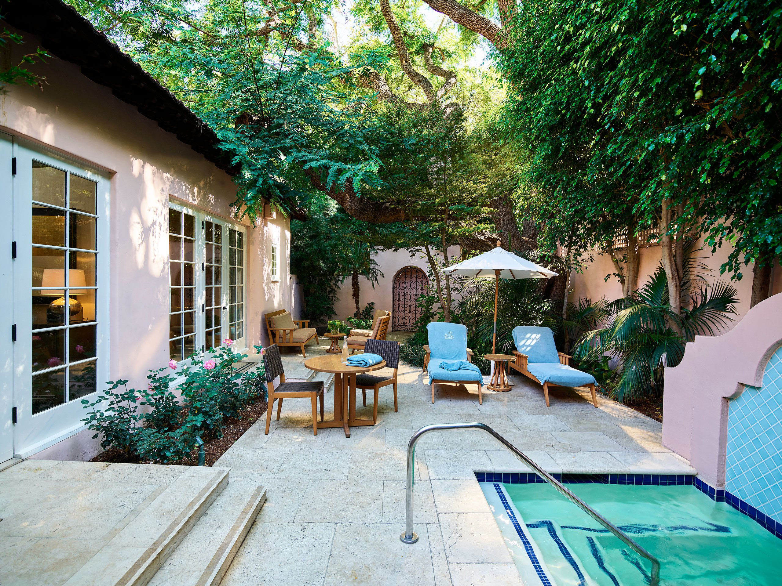 - Many of the rooms and suites have terraces and gardens, some with private pools