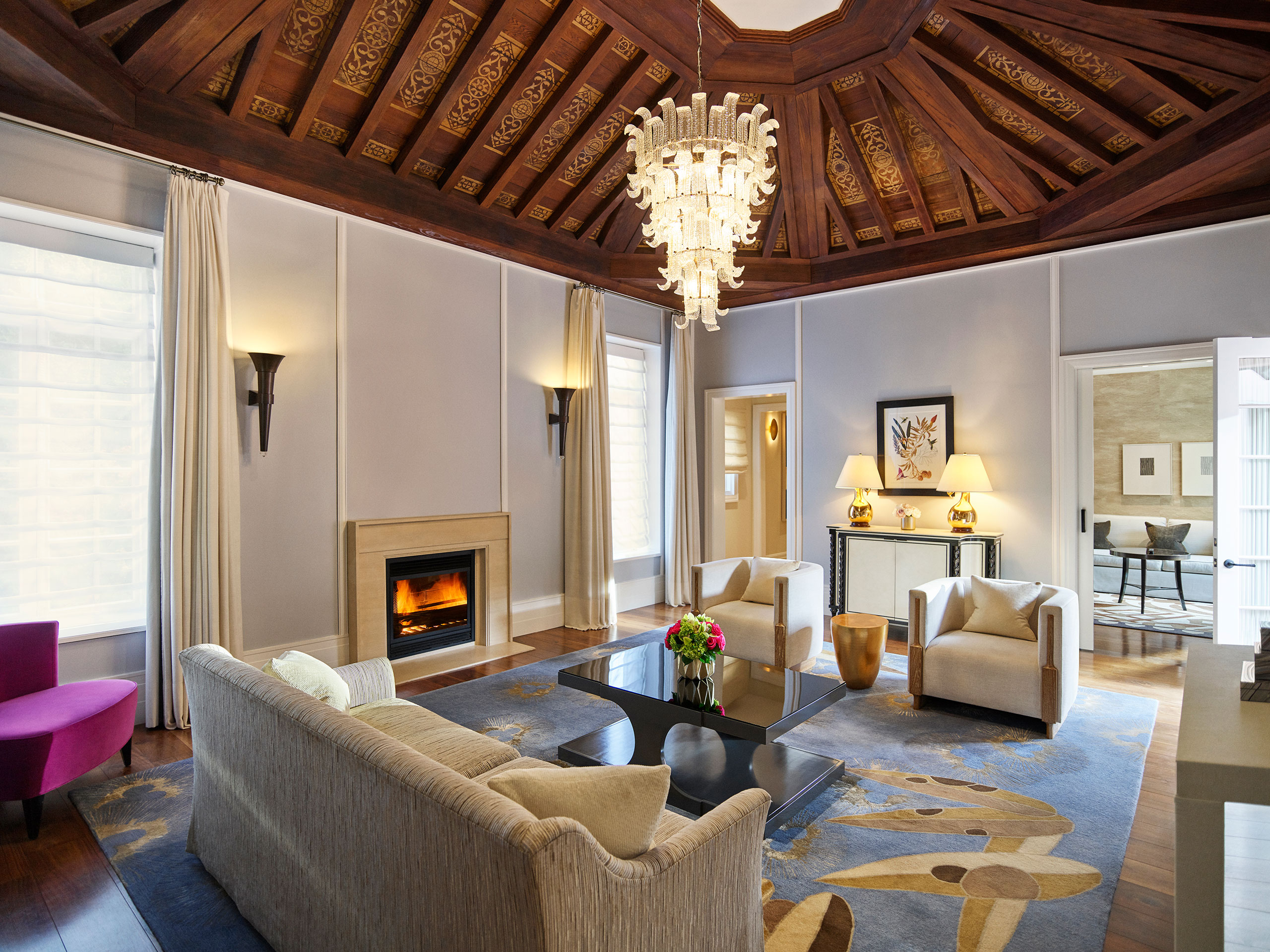 - Many rooms and suites include residential features such as fireplaces, private patios and outdoor plunge pools