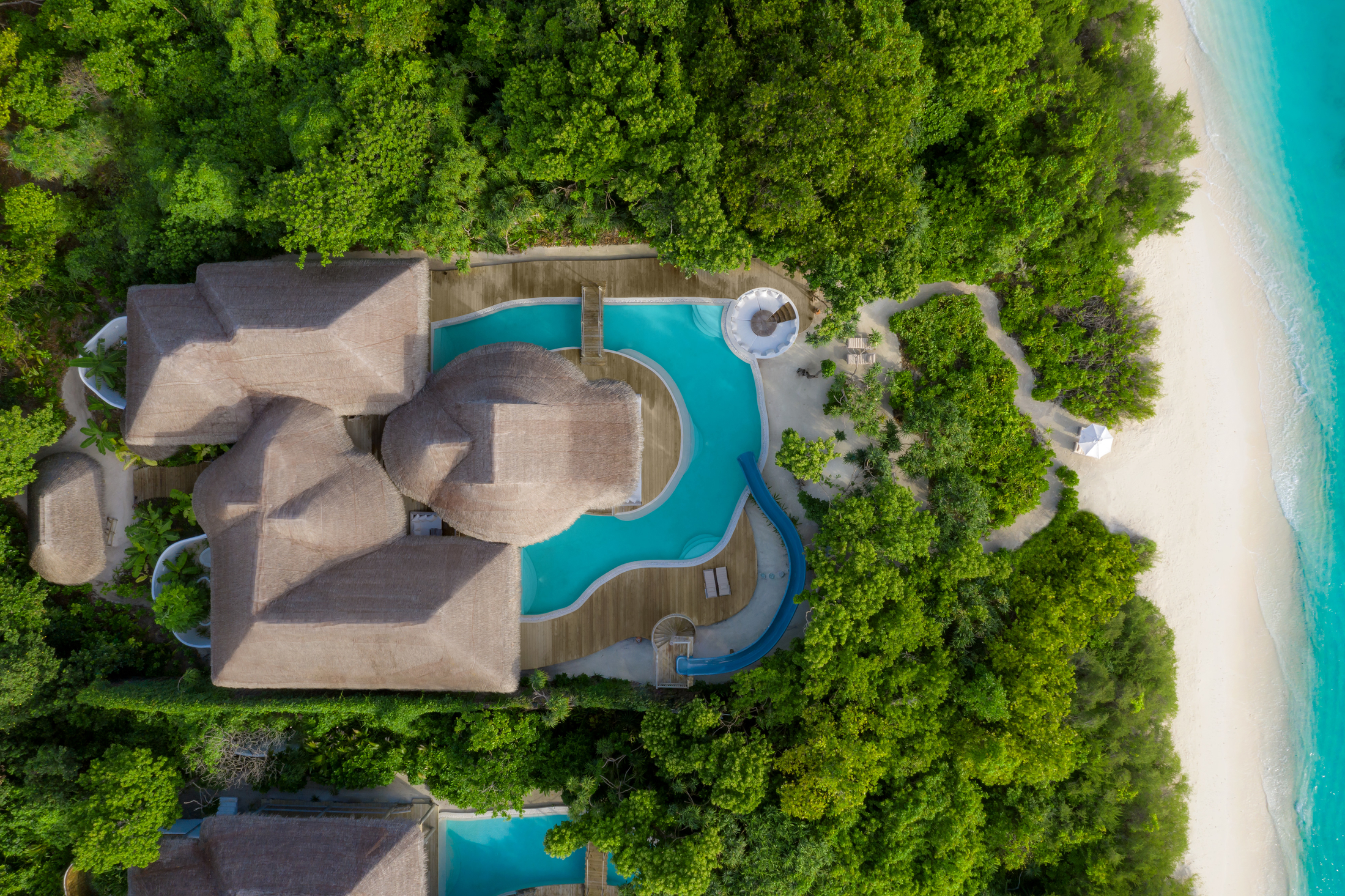 - 63 beachfront villas and eight Water Retreats range in size from one to nine bedrooms.